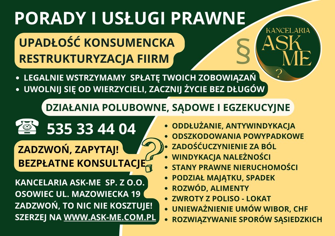 Kancelaria prawna ASK-ME Osowiec k. Grodziska mazowieckiego Zapytaj, zdalne usługi prawne.